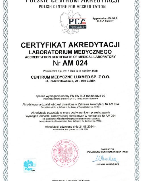 Akredytacja Laboratorium CM LUXMED